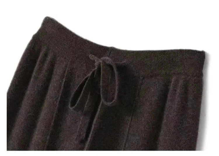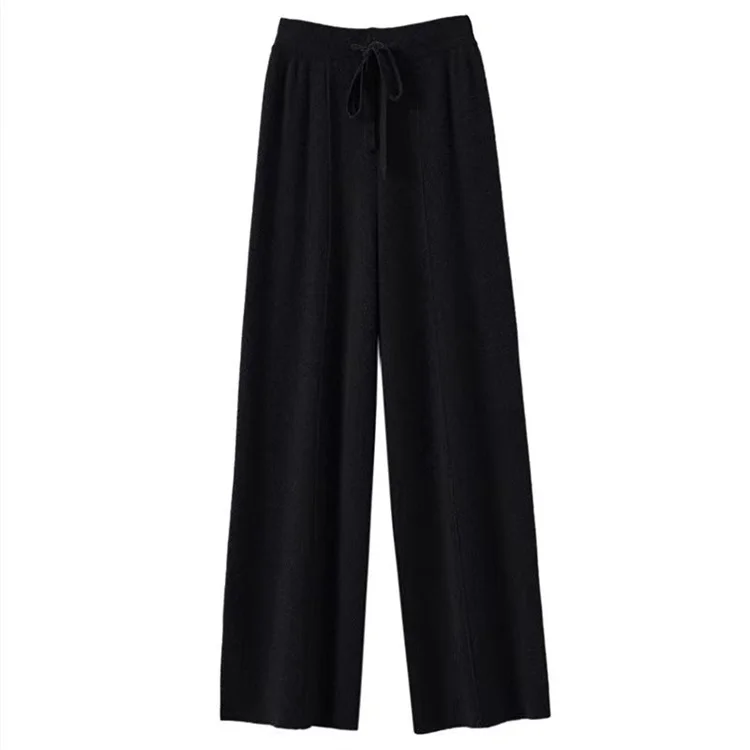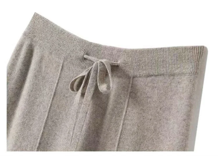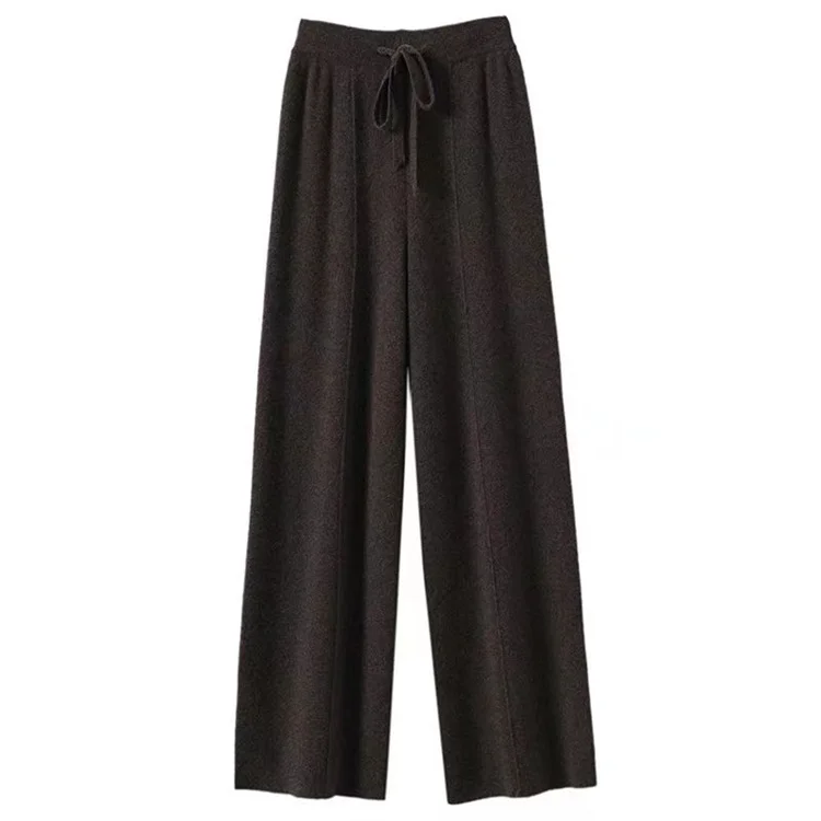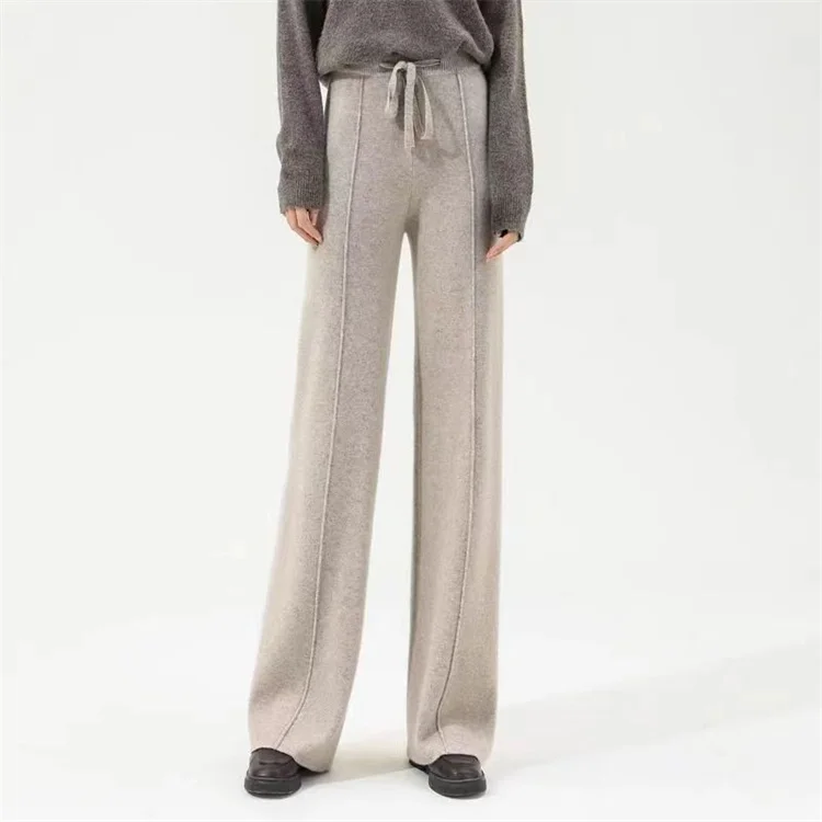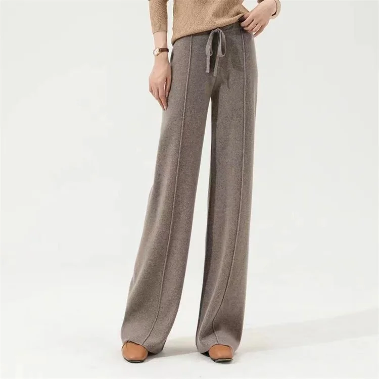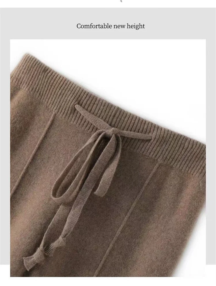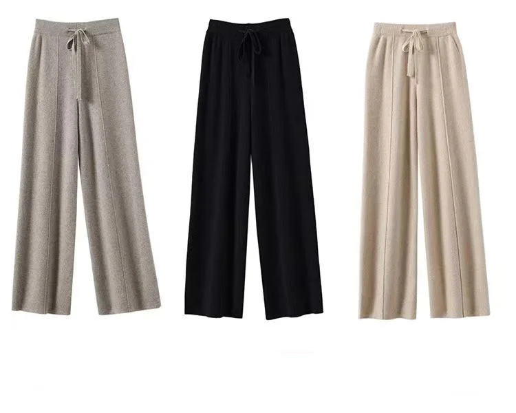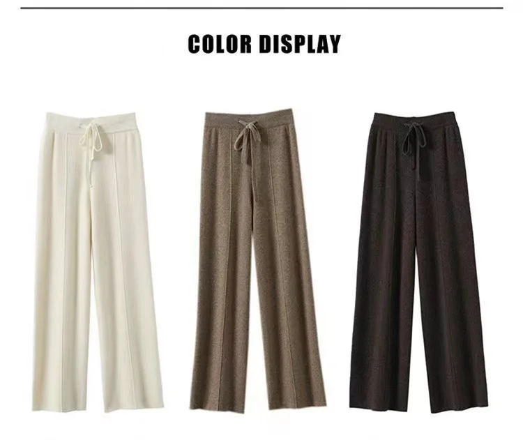 100% Cashmere Wide-Leg Knit Pants - High-Waist Soft Warm Trousers for Effortless Autumn/Winter Style