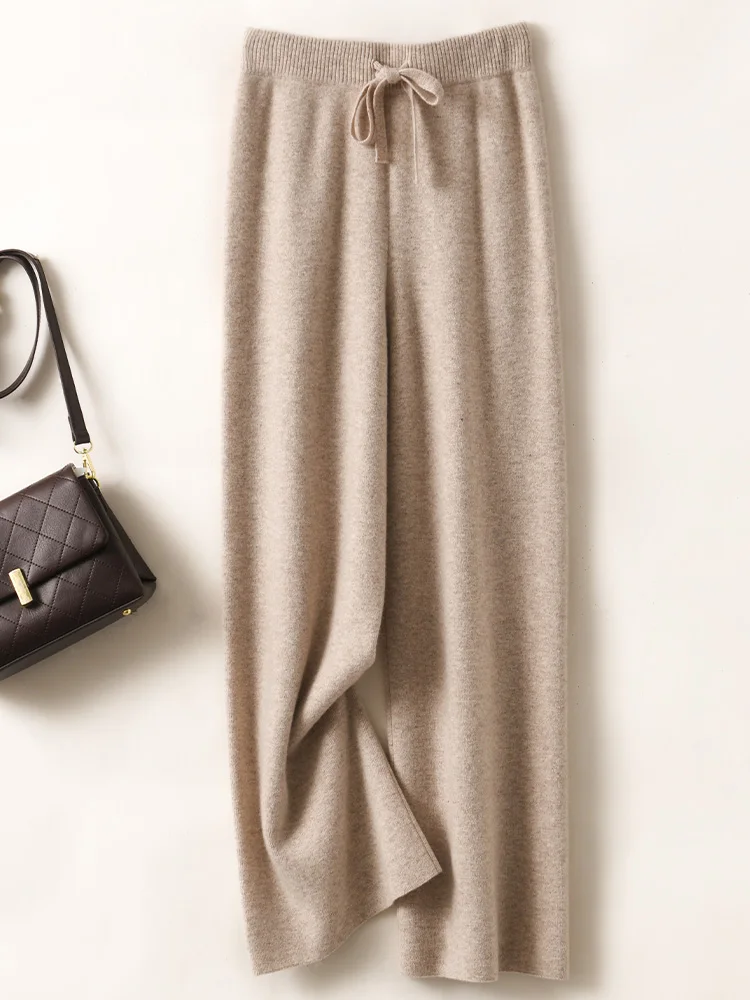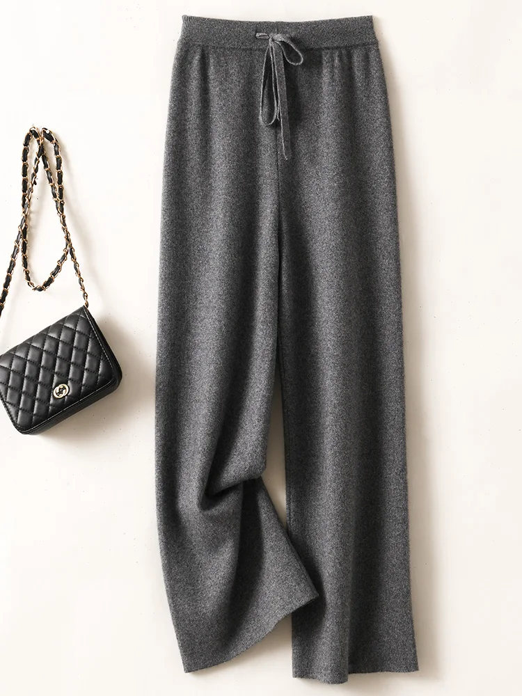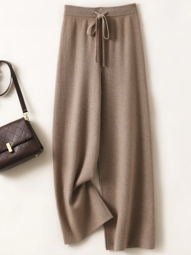 Adele Women’s Wide-Leg Knit Pants – Soft Loose Fit 100% Merino Wool Trousers for Autumn/Winter